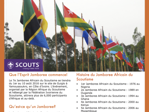 Le 7e Jamboree Africain du Scoutisme se tiendra du 1er au 10 Août 2016 à Yamoussoukro, en Côte d'Ivoire. L'événement, organisé par la Région Africaine du Scoutisme et hébergé par la Fédération Ivoirienne du Scoutisme, devrait attirer plus de 6 000...