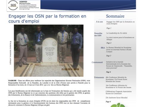Sommaire Engager les OSN par la formation en cours d'emploi Le Leadership du 21e siècle La voie à suivre pour le Scoutisme en Afrique Le Bureau Mondial du Scoutisme ouvre un nouveau bureau à Kuala Lumpur Initiative de la Journée Internationale de...