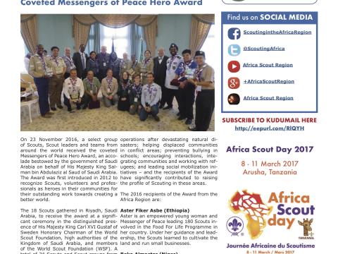 We are happy to share with you the December 2016 issue of Kudumail, the Africa Scout Region e-newsletter.