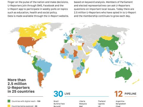 U-Report is a social messaging tool allowing anyone from any community, anywhere in the world to respond to polls, report issues, support child rights and work as positive agents of change on behalf of people in their country. You can become a U...