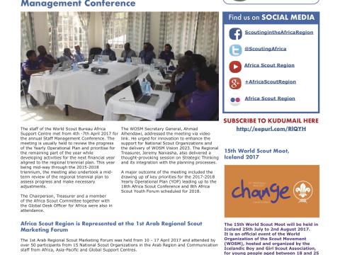 We are happy to share with you the March 2017 issue of Kudumail, the Africa Scout Region newsletter. You can read directly online by clicking https://www.scout.org/kudumail55. In case you missed the previous issues you can access it at https://www...