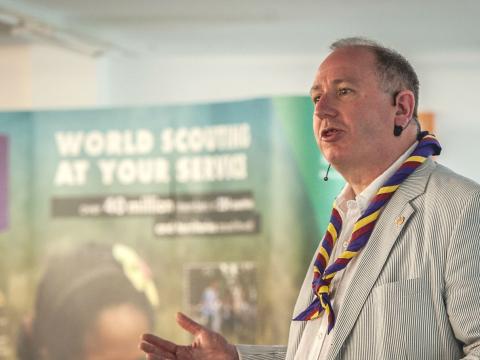 He entered the hall in a suit but decided that he had to put a scout scarf around his neck in order to feel home. John May, Secretary General of the Duke of Edinburgh`s International Award started the second day of the 2 nd World Scout Education...