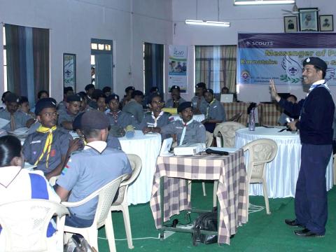 Seventy five young leaders representing 26 District Associations from Karnataka State Bharat Scouts and Guides, India gathered at their National Training Center Dr.Annie Besant Park in Dodabalapur to participate in the Messenger of Peace Karnataka...
