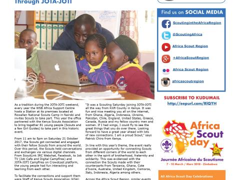 We are happy to share with you the October 2017 issue of Kudumail, the Africa Scout Region newsletter in both English and French. You can read directly online by clicking https://www.scout.org/kudumail62en and https://www.scout.org/kudumail62fr. In...