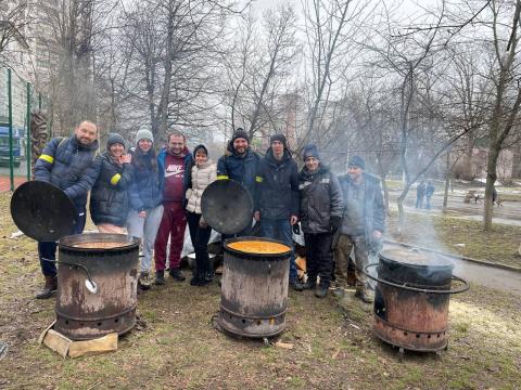 Also in Kyiv, Scouts honed their outdoor skills by setting up a field kitchen to cook and provide meals for the community.