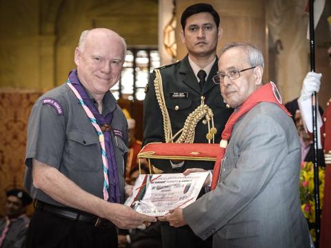 The President of India, Shri Pranab Mukherjee presented the Silver Elephant Award, the highest national award of Scouting and Guiding in the country, to WOSM Secretary General, Scott Teare at an awards ceremony yesterday. Find out more on bit.ly...