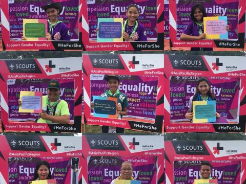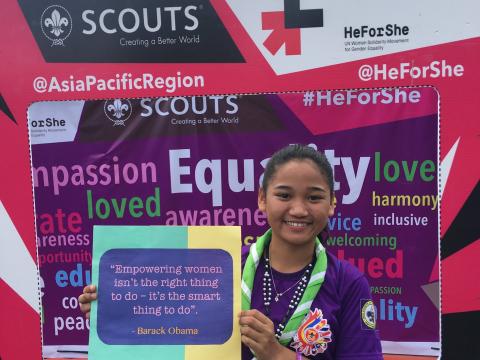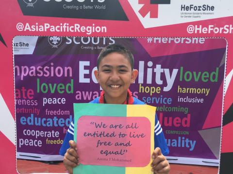 The Scout Movement forged new partnership with UN Women’s HeForShe initiative at the 41st World Scout Conference in Azerbaijan, inspiring millions of Scouts all over the world to strive for a more gender-equal world. During the 6th ASEAN Scout Jamboree in Tagum, Philippines from 27 November to 2 December 2017, over 1,000 Scouts and leaders from Indonesia, Malaysia, Philippines and Thailand commit to gender equality.