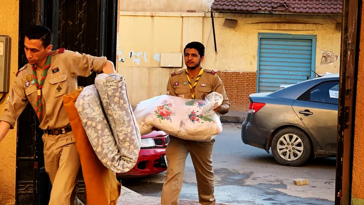 كشافة ليبيا يهيئون مراكز لإيواء النازحين من العائلات