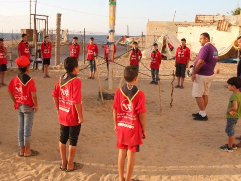 من أجمل البرامج التي يحبها فتى الكشافة المخيمات الكشفية ، وهذه المرة السابعة كشافة نادي الشاطئ البحرية بدولة الفلسطين يقيمون مخيمهم البحري لـ 60 مشاركاً من مرحلتي الفتيان والمتقدم على شاطئ مدينة غزة .