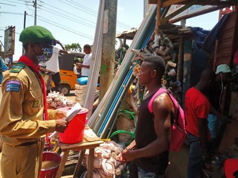 On the request of the Emergency Operations Centre (EOC) in Cockeril, the Sierra Leone Scouts Association (SLSA) deployed a team of 25 Scout volunteers for a week-long Communication and Social Mobilization research exercise in the Commercial Business District (CBD) and Lumley neighbourhoods of the country’s capital, Freetown. The exercise aimed at assessing the compliance levels of small business holders with the COVID-19 preventive and control measures within their business environment and to promote the increased knowledge and understanding of the public about the COVID 19 disease.