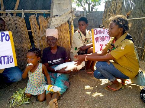 In Monkey Bay, about 390km away from the city of Lilongwe, Scouts in Malawi are running a dual awareness campaign targeting to provide communities with information on COVID-19 and Malaria. This is as a result of reduced access to treated mosquito nets and malaria medication occasioned by the global COVID-19 pandemic.