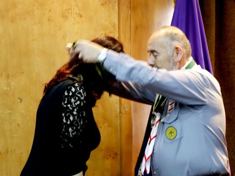 تم بعدها عرض فيلم عن حياة ليلى علم الدين وأهم المحطات بها وجاء بعد الفيلم اللحظة التي اجتمعنا من اجلها اليوم وهي التوسيم بوسام الذئب البرونزي, فتم الطلب من الحاصلين على وسام الذئب البرونزي الوقوف ليتعرف الحضور عليهم، وقد قام الدكتور هاني عبد الوهاب المدير العالمي لتطوير الكشفية وسكرتير لجنة الأوسمة العالمية بعرض السيرة الذاتية للسيدة ليلى علم الدين وبعدها تم توسيم السيدة/ ريهام عبد الغفار بالوسام والذي قدمه لها القائد/ جورج غريب رئيس اتحاد كشاف لبنان والمفوض من لجنة الأوسمة العالمية لتسليم الوسام.