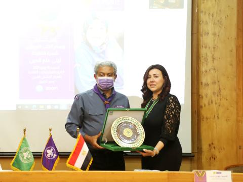 وأختتم اليوم بتقديم السيد عمرو حمدي الأمين العام للمنظمة الكشفية العربية و المدير الإقليمي لدرع المنظمة لأسرة الراحلة