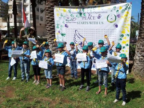 فى طرابلس بلبنان ومع جمعية كشاف البيئة كان الاحتفال بيوم السلام العالمى له مذاق خاص فقد تجمع الأطفال اللبنانين مع الأطفال السوريين النازحين ورفعوا لافتة كبيرة في مدينة الميناء- طرابلس تحمل عبارة السلام يبدأ معنا بعد أن مهرها المشاركون بأكفهم الملونة...