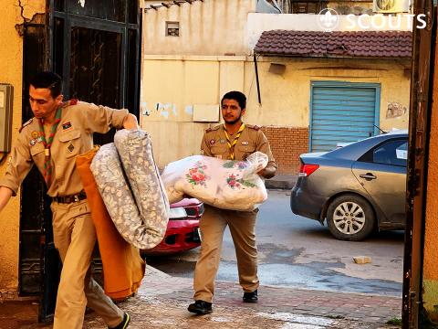من واجب الكشافة أن يساعد الناس في جميع الظروف ، ومن هذا المنطلق قامت الحركة العامة للكشافة والمرشدات في ليبيا تجهيز مكان مناسب للنازحين من العائلات بطرابلس في مركز الغنيمي للإيواء . قدمت الكشافة العديد من الخدمات والمساعدات الإنسانية لهؤلاء النازحين...
