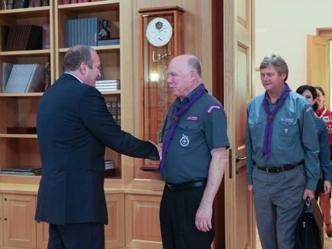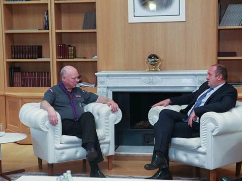 Во время беседы Георгия Маргвелашвили, Президента Грузии и Скота Тира, Генерального Секретаря ВОСД обсудили роль и значение Скаутинга в образовательном факторе для молодежи. Были подчеркнуты возможности Скаутинга в роли развития в молодежи лидерских качеств и основ демократии, а также поддержка Скаутинга в становлении полноценными гражданами.