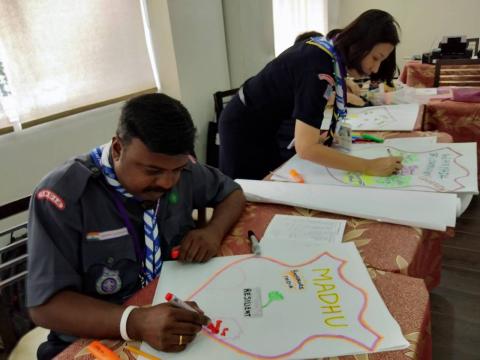 During the early sessions, coordinators shared how the impact of their work is amplified when paired with members of Scouts, local communities, non-governmental organisations, as well as with local and national governmental institutions. Since its launch in 2011, MoP has many successful projects: globalization network in Bhutan getting the full support from King Jigme Khesar Namgyel Wangchuk himself; youth leadership summit and events, Philippines; nationwide peace day and online campaigns, Indonesia; and service camps during large scale international and religious events in India – leading to the promotion of MoP to almost 100,000 people per day.
