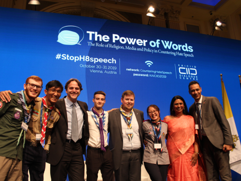 VIENA, Austria - Cinco Scouts de las Regiones Scout de Asia-Pacífico e Interamerica se unieron a casi 200 líderes religiosos, teólogos, diplomáticos y representantes importantes de organizaciones intergubernamentales y organizaciones no gubernamentales (ONG) de todo el mundo durante dos días en Viena para una conferencia que se centró en discutir y compartir ideas para contrarrestar el discurso de odio.