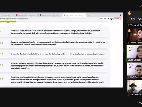El pasado sábado 30 de octubre se reunieron para una jornada de trabajo, en donde a través de la guía del Grupo de Trabajo de Planificación Estratégica del Comité Scout Interamericano esbozaron el primer borrador de los objetivos del Plan Regional 2022-2025.