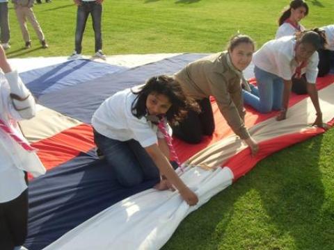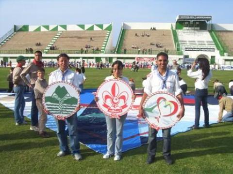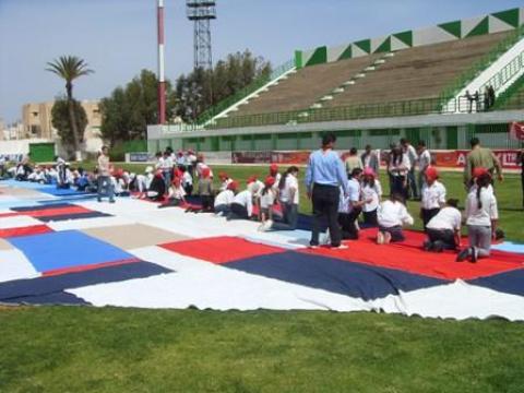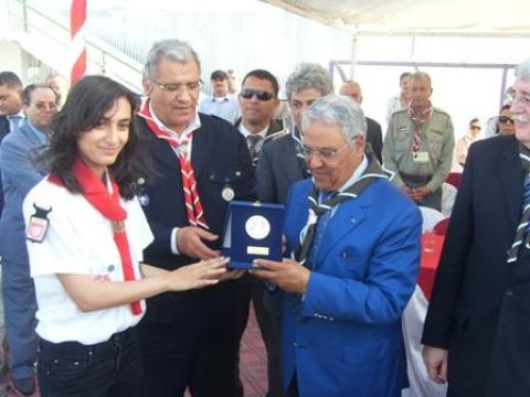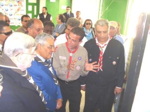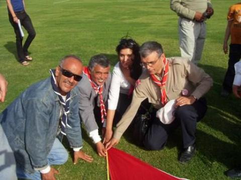 16 meters sheets of clothes were used in the scarf. The manufacturing process took 1762 hours, about 32 days to finish it. A very big ceremony was organized in the local Football Pitch in Hammam Al- Anf; south of Tunisia the capital where the Biggest Scouting Scarf which was conducted by Hammam Al- Anf troop (Bin Arous sector) was shown . The ceremony was attended by Mr. Mohamed Al- Mahdi Meleka – Minister and the Chairman of the National Committee responsible for Cleaning & Looking after the environment accompanying with Mr. Ali Fathallah – Chairman; Les scouts Tunisiens in addition to a very big number of Scouts, Media representatives, VIPs and key guests. Under the Motto “ The challenge starts from here”, it was reported that the Scarf is going to travel through the different Tunisia governorates as a promotion of the Scout Movement and to attract more involvement of Youth in the different Scouting activities.