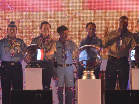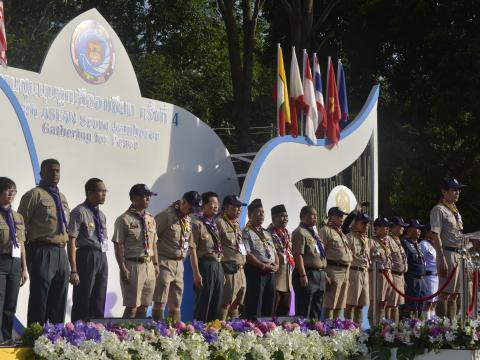 It is much more than an ASEAN Scout Jamboree with the participation of National Scout Organizations from 16 countries including the host – Thailand. Over 5,000 Scouts took part in the Jamboree at the Vajiravudh Scout Camp in Chonburi Province. Participating countries were Bangladesh, Cambodia, Germany, India, Indonesia, Korea, Malaysia, Maldives, Mongolia, Myanmar, Pakistan, Philippines, Singapore, Sri Lanka, Vietnam and Thailand. Around 18 Scouts and leaders from Myanmar attended the Jamboree, the first time in five decades. The Jamboree was held from 28 November to 3 December with National Scout Organization of Thailand as host in cooperation with the ASEAN Scout Association for Regional Cooperation (ASARC) and in conjunction with the 86th birthday of King Bhumibol Adulyadej. Main activities were Messengers of Peace, Community Development, ASEAN Development Village, ASEAN Peace Circle, ASEAN Tournament and Hiking. Several special and free time activities were offered. Ms Sorsawan Ho, Chairman of Young Adults Members Group (YAMG) composed the Jamboree song entitled “Gathering for Peace.” There were two parts of the opening program. First part was the ceremonial opening where Mr Chaturon Chaisang, Minister of Education and Chairman of the NSOT Executive Board was the Guest of Honor and Speaker. Second part was the official camp opening by APR Chairman Dr Chao Shou-Po and Dr Sharom, ASARC Chairman. Asia-Pacific Region was also represented by Regional Director JR Pangilinan, RSC members Janaprith Fernando, Wendel Avisado and Dr Azrul Azwar; Chairman of Adult Resources Rajalingam Ramasamy; Member of Financial Resources Sub-Committee Danilo Asiaten; ASARC Chairman Dr Sharum Bin Osman; APR Consultant Prakorb Mukura and Chairman of the YAMG Sornsawan Ho.
