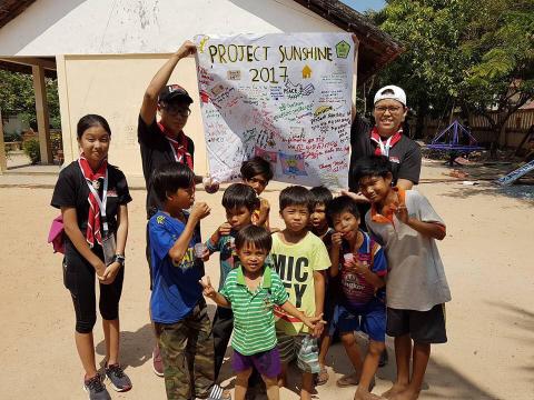 A collaboration of the Singapore Scout Association and Cambodia Scouts for a good cause. Part of the activity this year was engaging children at Bookbridge Learning Centre at Takeo Province in a series of activities with the Project Sunshine 2017 team.