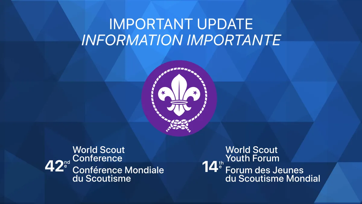 Partout dans le monde la pandémie de COVID-19 continue à faire obstacles à l'organisation d'événements en personne, et de nombreuses organisations internationales organisent maintenant des rassemblements internationaux et des conférences en ligne. Lors de la planification de la 42e Conférence Mondiale du Scoutisme et du 14e Forum des Jeunes du Scoutisme Mondial, le Comité Mondial du Scoutisme a examiné avec soin l'étude menée sur les différentes modalités d'organisations possible pour ces événements, en tenant compte de la santé et la sécurité de tous les participants, les exigences constitutionnelles et les opinions des Organisations Scoutes Nationales (OSN).