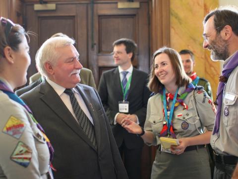 Hylands Park, Chelmsford, Royaume-Uni – 3 août 2007 – L’ancien president de la Pologne, Lech Walesa, a passé 2 jours à visiter le Jamboree mondial scout. Entouré de members du contingent polonais, il a fait le tour du site pour voir plusieurs des...