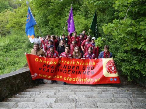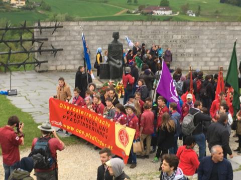 More than 7000 guests attended this year’s remembrance ceremony at Mauthausen Concentration Camp near Linz in Austria, commemorating the 72nd anniversary of the liberation in May 1945. Among them once again a large delegation of Guides and Scouts of Pfadfinder und Pfadfinderinnen Österreichs (PPÖ, the Scouts and Guides of Austria) from local groups in Vienna, Tirol, Upper-Austria and Lower-Austria.