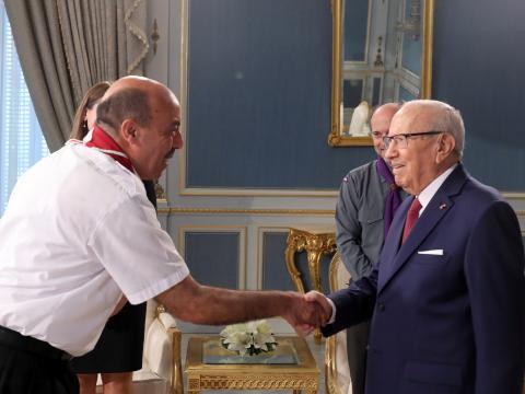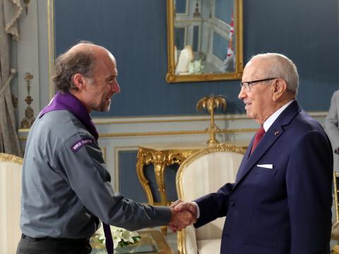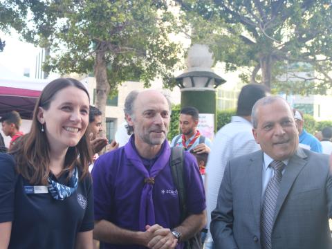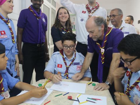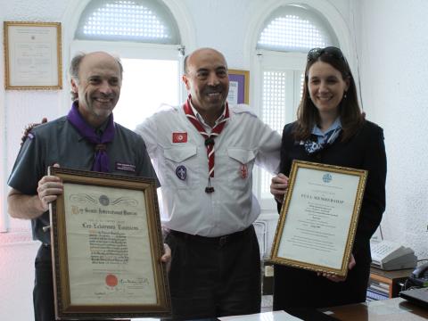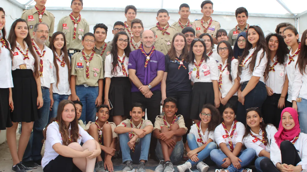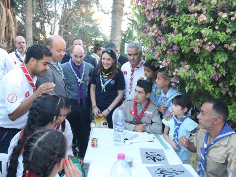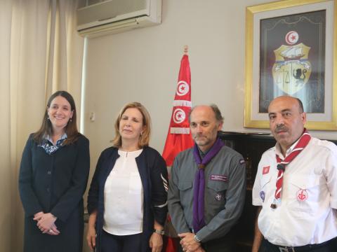 On 1 – 3 July 2017, the Chairperson of the World Scout Committee, João Armando Gonçalves, representing the World Organization of the Scout Movement (WOSM), and Nicola Grinstead, the World Board Chair of the World Association of Girl Guides and Girl Scouts (WAGGGS) made their first-ever joint visit to Tunisia, and met with Scouts of Les Scouts Tunisiens, and government officials.