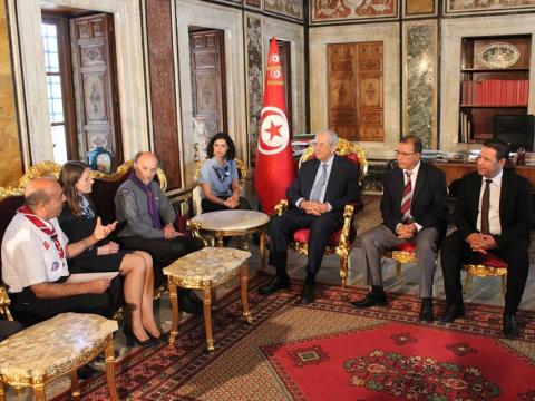 The Chairs of both organisations had a full hectic three-day agenda. They first met the Minister of Youth and Sports during the official reception at Les Scouts Tunisiens’ headquarters. Their schedule was subsequently filled with meetings with the President of Tunisia, President of the Parliament, and several ministers – Minister of Women, Family and Children; Minister of Foreign Affairs; Minister of Tourism – district governors and other top government officials as well as intergovernmental and non-profit organisations.
