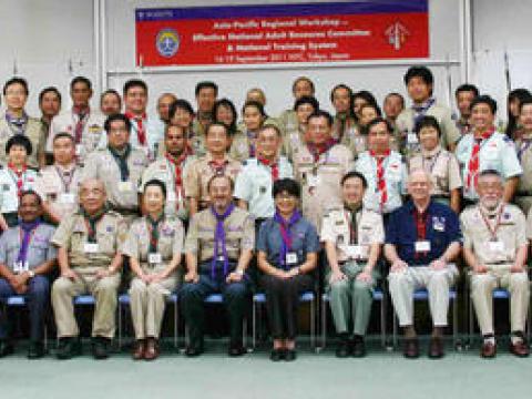 14 September, Tokyo -- Ten National Scout Organizations with 25 participants are gathered at the National Olympics Memorial Youth Centre for a four-day regional workshop on Effective National Adult Resources Committee and National Training System. The workshop aims to provide an understanding on the importance of the revised World Policy on Adults in Scouting (AIS), strengthen Adult Support for effective implementation of adult training and serves as a platform for adult leaders from different NSOs to exchange ideas and share their experiences.