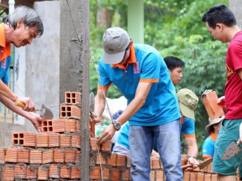 Vietnamese Scouts partner with Habitat for Humanity to build houses for people living in two districts of Thap province, including a bridge and water supply system.