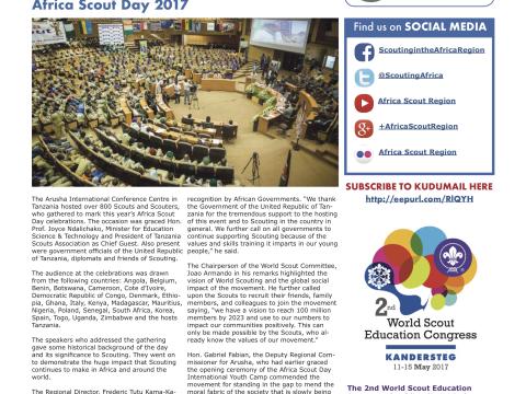 We are happy to share with you the March 2017 issue of Kudumail, the Africa Scout Region newsletter. You can read directly online by clicking https://www.scout.org/kudumail55. In case you missed the previous issues you can access it at https://www...
