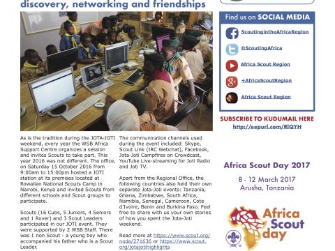 Dear Friends, We are happy to share with you the October 2016 issue of Kudumail, the Africa Scout Region newsletter. Enjoy your reading! -----------------------------------------------------------------------------------------------------------------...