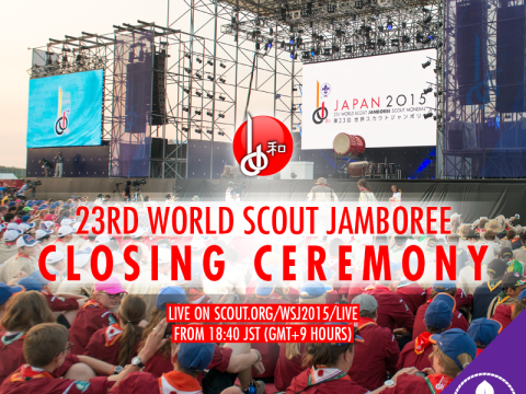 Join us as we mark the end of the 23rd World Scout Jamboree today, 7 August 2015 in Kirara-hama, Yamaguchi, Japan! Watch the closing ceremony and pre-show live on scout.org/wsj2015/live from 18:40 JST (GMT+9 hours).