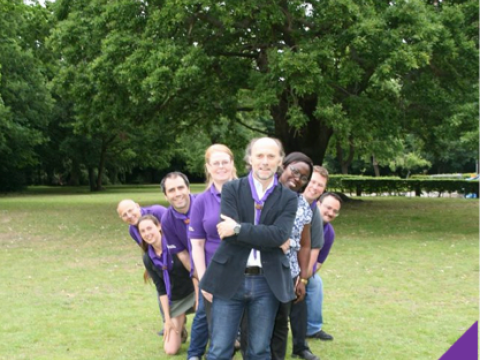 Members of the Europen Scout Committee of WOSM and theirt guests from the World Scout Committee enjoy a good moment on the Training Ground at Gilwell Park (Chingford, United Kingdom) during their recent regular meeting.