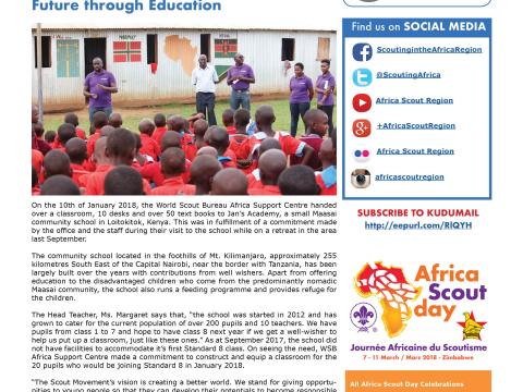We are happy to share with you the January 2018 issue of Kudumail, the Africa Scout Region newsletter. You can read directly online by clicking https://www.scout.org/kudumail65en. In case you missed the previous issue you can access it at https://www...