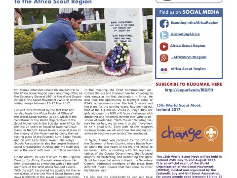 We are happy to share with you the October 2017 issue of Kudumail, the Africa Scout Region newsletter in both English and French. You can read directly online by clicking https://www.scout.org/kudumail62en and https://www.scout.org/kudumail62fr. In...