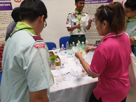 At the ECO Fest held on 21 July 2019 in Singapore, Scouts shared with visitors how to inject new life to recycled bottles and transform them into beautiful planters.