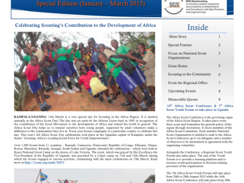 Dear Friends, We are happy to share with you the April 2015 Issue of Kudumail, the Africa Scout Region newsletter. Enjoy your reading! .............................................................................................. Cher/Chère amis...