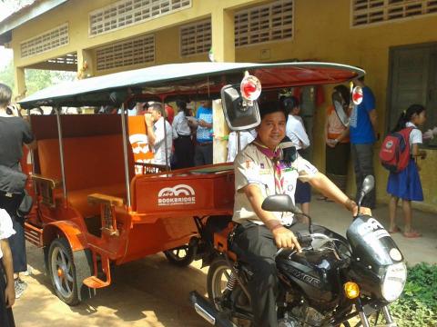 From library centre to mobile learning centre, Cambodia Scouts, in partnership with BOOKBRIDGE delivered more than 400 books and e-book tablets in Tramkork district, Takeo province, Cambodia on 23 March 2015.