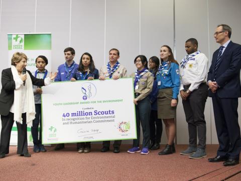 6 October 2015, Geneva, Switzerland: All 40 million Scouts worldwide were today honoured with a “Youth Leadership Award for the Environment” for their dedication to environmental protection at the Green Cross International Conference for a Green and...